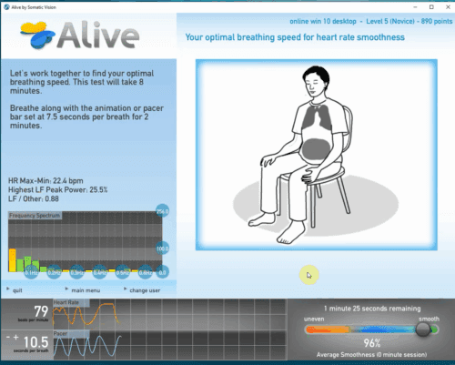 Alive, which also integrates coaching and performance tracking, uses biofeedback technology, which has been proven effective in helping people achieve better mental agility and better performance in physically and emotionally demanding job and life situations.