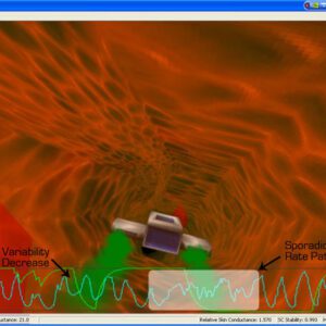 Uses heart rate, heart rate variability (HRV) & galvanic skin response (GSR) to control the ship’s speed & to alter the in-game environment.